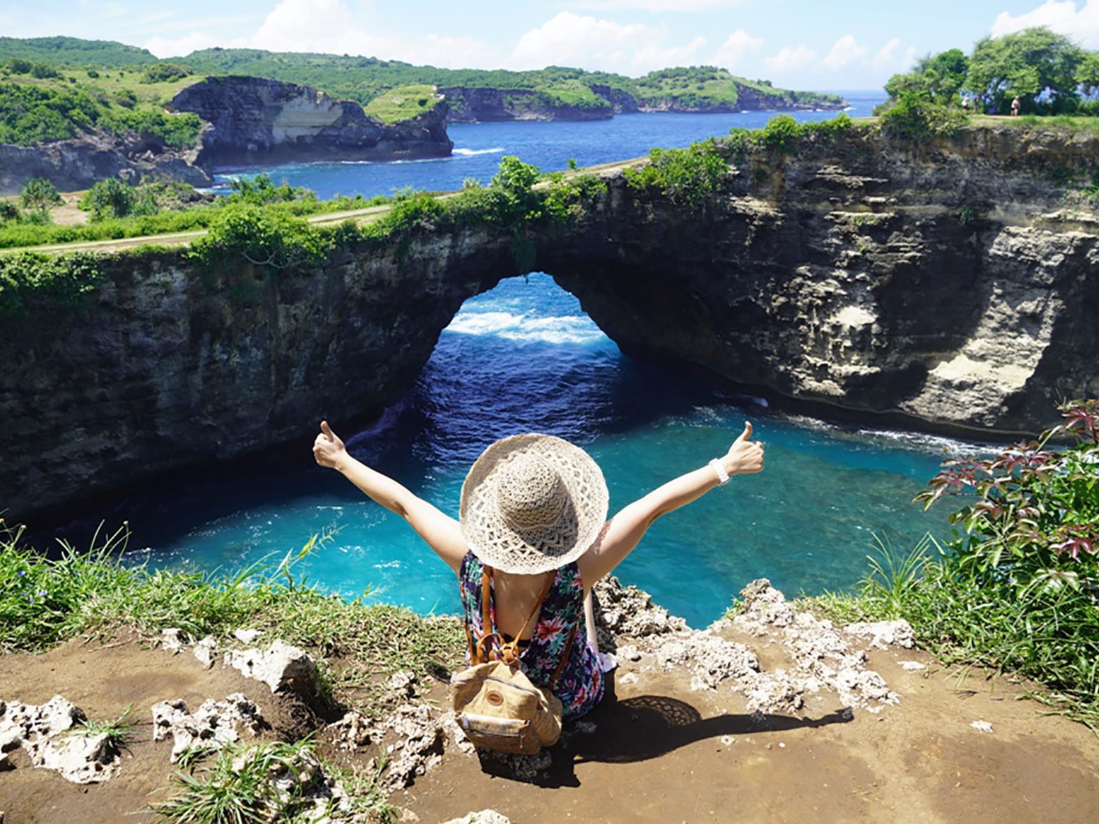 also known as Pantai Pasih Uug, is a stunning natural landmark located on the island of Nusa Penida, near Bali, Indonesia. It is renowned for its dramatic coastal scenery, featuring a large circular cove with towering limestone cliffs that encircle a beautiful turquoise lagoon. The name “Broken Beach” comes from the unique natural archway formed by the erosion of the cliffs, which allows seawater to flow in and out of the cove - Lunch at local restaurant in Nusa Penida area