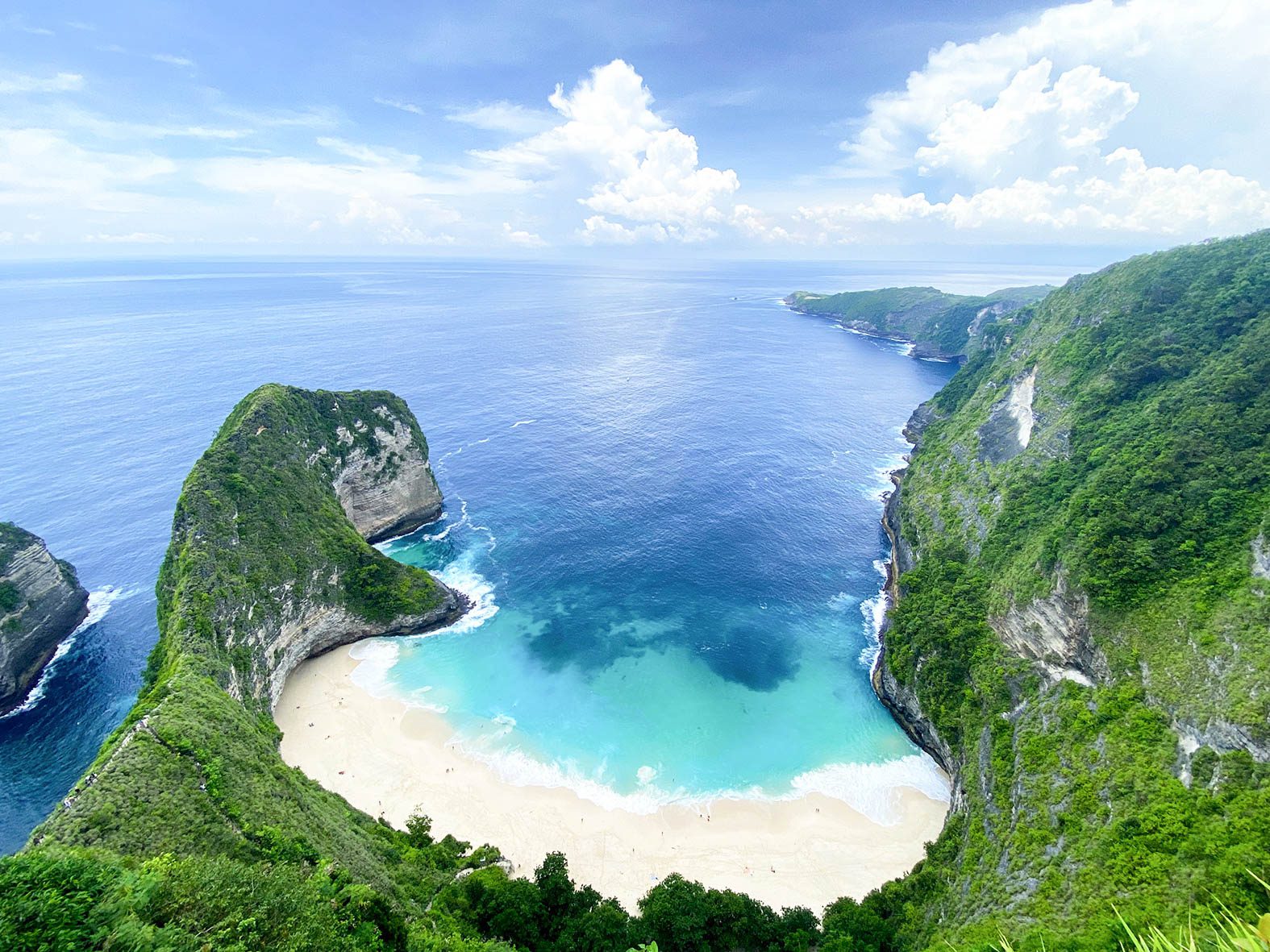 located on the southwestern tip of Nusa Penida in Bali, Indonesia, is one of the most iconic and breathtaking beaches in the world. Renowned for its dramatic cliffs and pristine turquoise waters, the beach is often referred to as the “T-Rex Beach” due to the distinctive shape of its cliff, which resembles the head of a Tyrannosaurus Rex when viewed from above - Angel Bilabong Beach