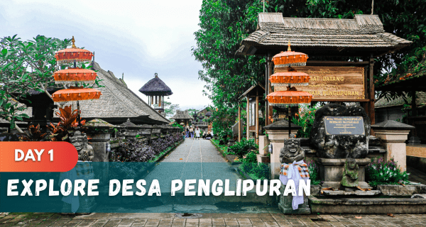 - Explore Desa Penglipuran ; Terkenal jadi salah satu desa terbersih di dunia, desa ini juga memiliki daya tarik dari segi arsitektur bangunannya yang unik, adat istiadatnya yang masih dijaga dengan baik, dan suasana lingkungannya yang asri pastinya akan buat betah saat berkunjung kesini