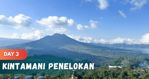 - Perjalanan berlanjut ke KINTAMANI PENELOKAN. Saatnya menikmati udara sejuk dan pemandangan kece Gunung Batur & Danau Batur dari atas.