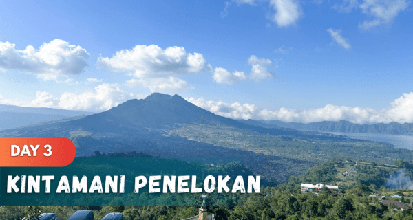 - Perjalanan berlanjut ke KINTAMANI PENELOKAN, saatnya menikmati udara sejuk dan pemandangan kece Gunung Batur & Danau Batur dari atas.