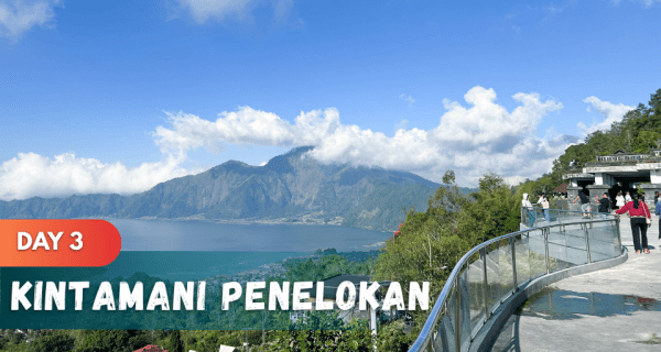 - Perjalanan berlanjut ke KINTAMANI PENELOKAN, saatnya menikmati udara sejuk dan pemandangan kece Gunung Batur & Danau Batur dari atas.